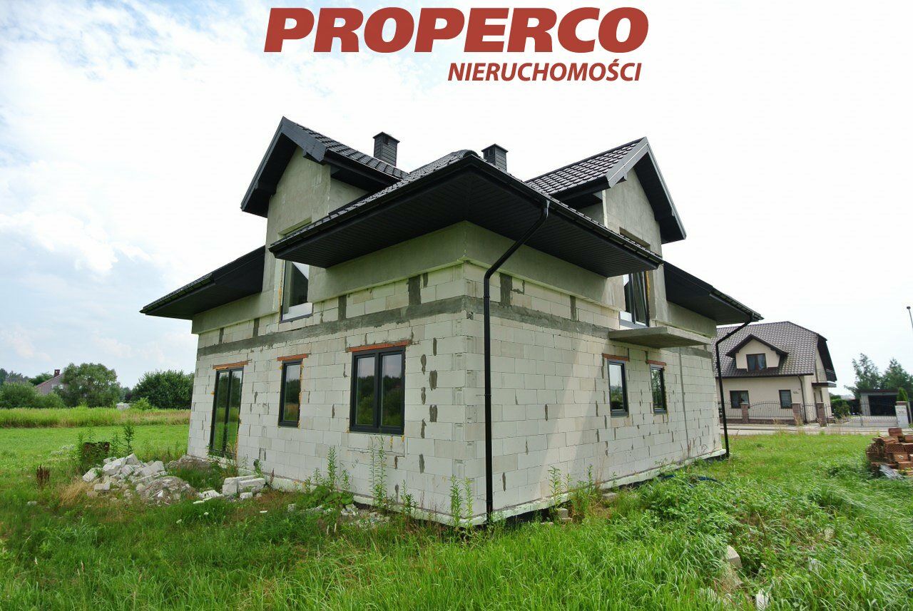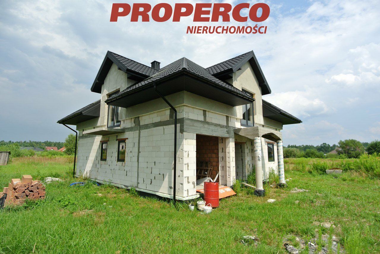 Dom wybudowany z pustaka ceramicznego i betonu komórkowego, kryty blachą. Planowane ogrzewanie na gaz z sieci. Nieruchomość w stanie surowym otwartym