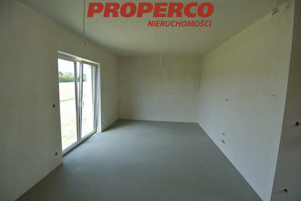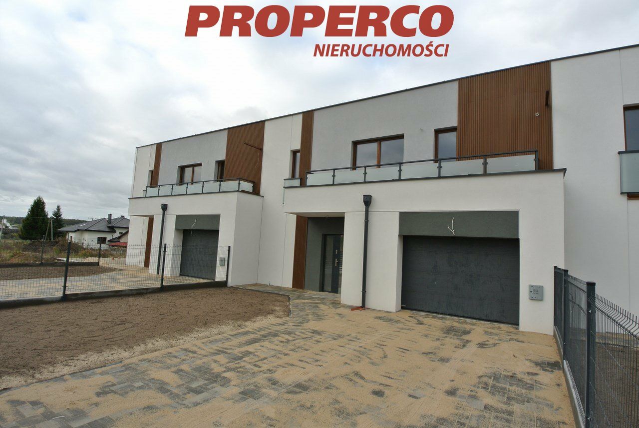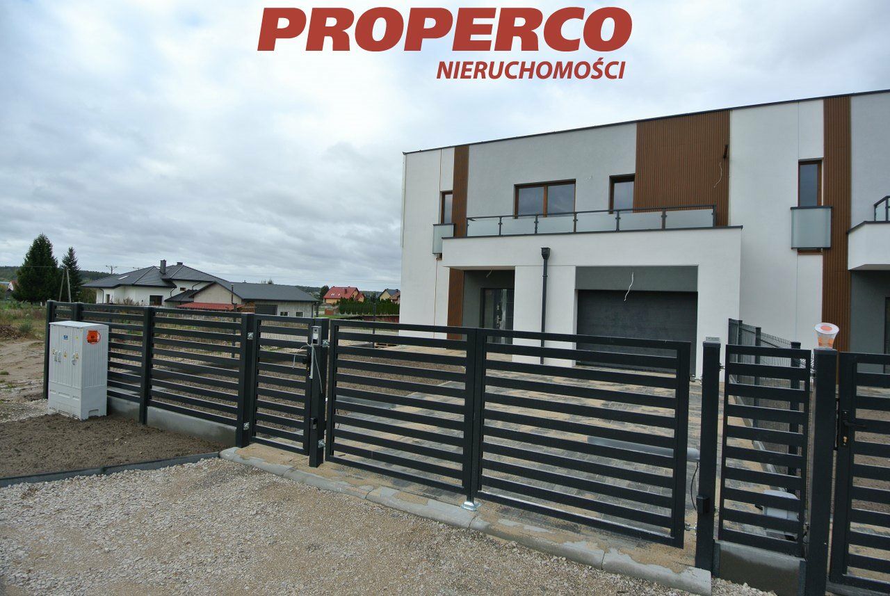 For sale: A terraced house in a developer's state, with a usable area of 143.83 m² , located in a newly emerging housing estate in Bilcza, Morawica municipality. The plot area is 321 m². The house is in a developer's state, with underfloor heating. The area around the building will be leveled, with a driveway to the garage and a path to the front door paved with cobblestones. The plot will be fenced. The house has a flat roof with full thermal insulation.