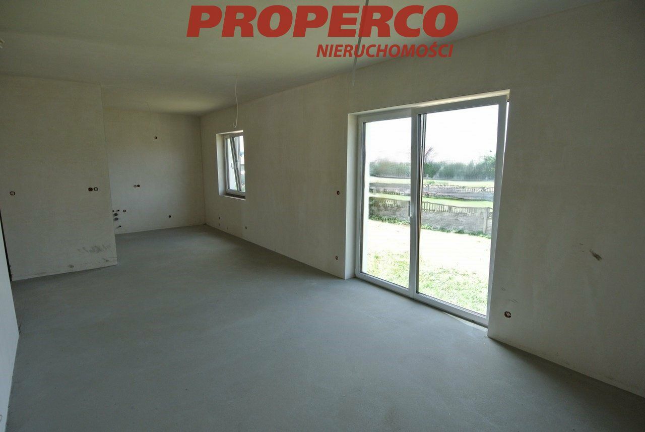 Distance from Kielce: approximately 15 km, with quick and easy access to the city center. Quiet and peaceful surroundings. Within approx. 1 km there are a school, shops, a clinic, a nursery, and a forest.